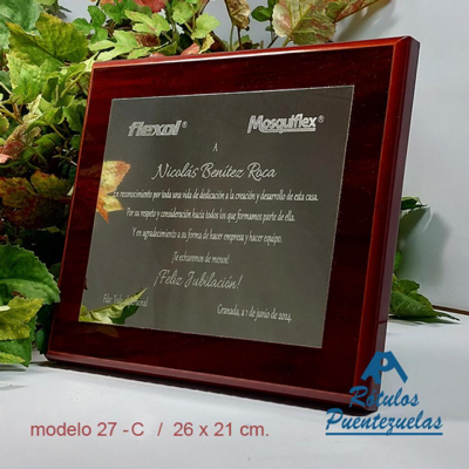 Placa de homenaje de madera grabada conmemorativa, para agradecimiento o recuerdo con estuche de presentación.