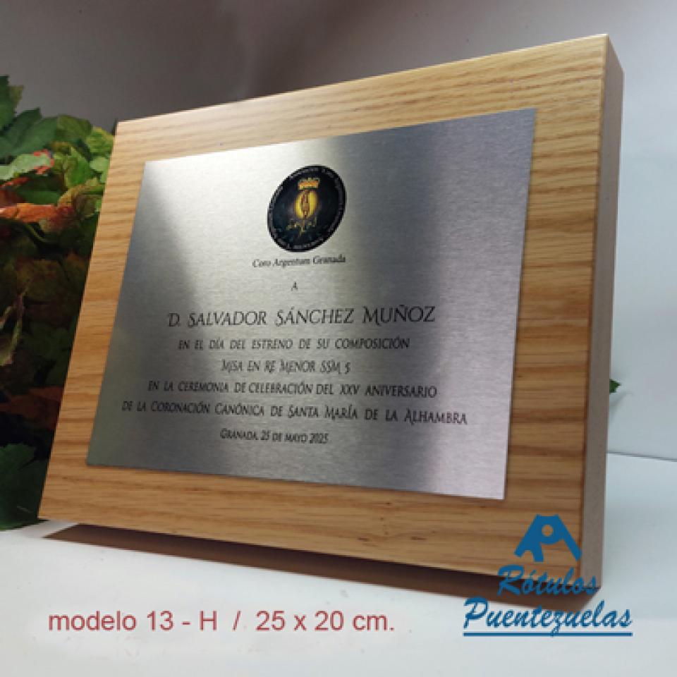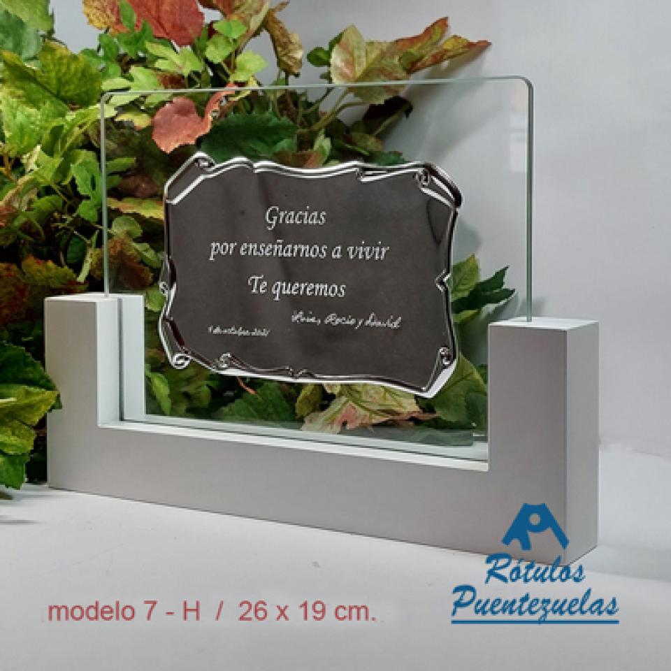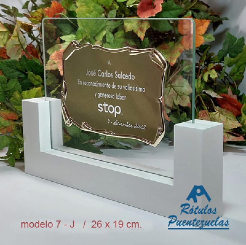 Placa de homenaje de aluminio impresa con metacrilato conmemorativa, para agradecimiento o recuerdo con estuche de presentación.