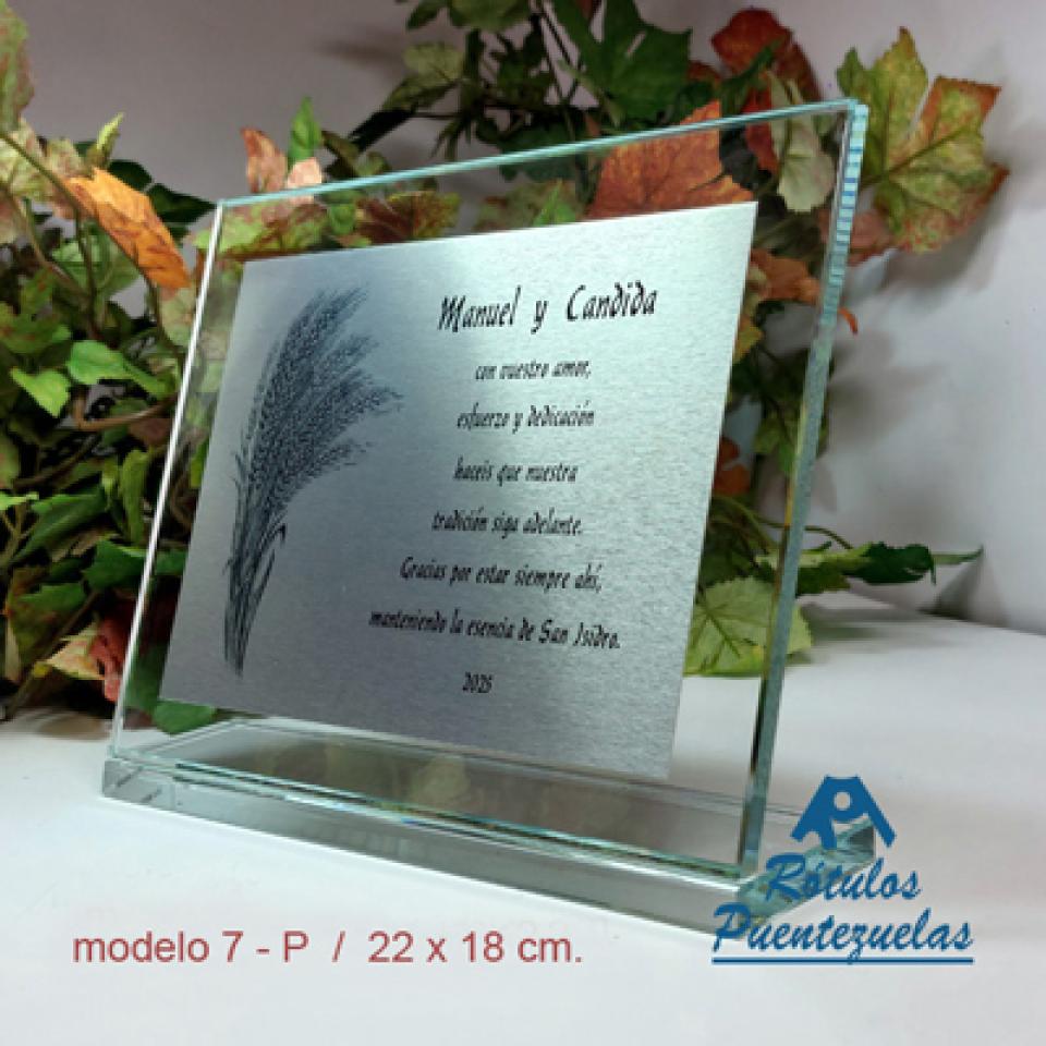 Placa de homenaje de cristal grabada conmemorativa, para agradecimiento o recuerdo con estuche de presentación.