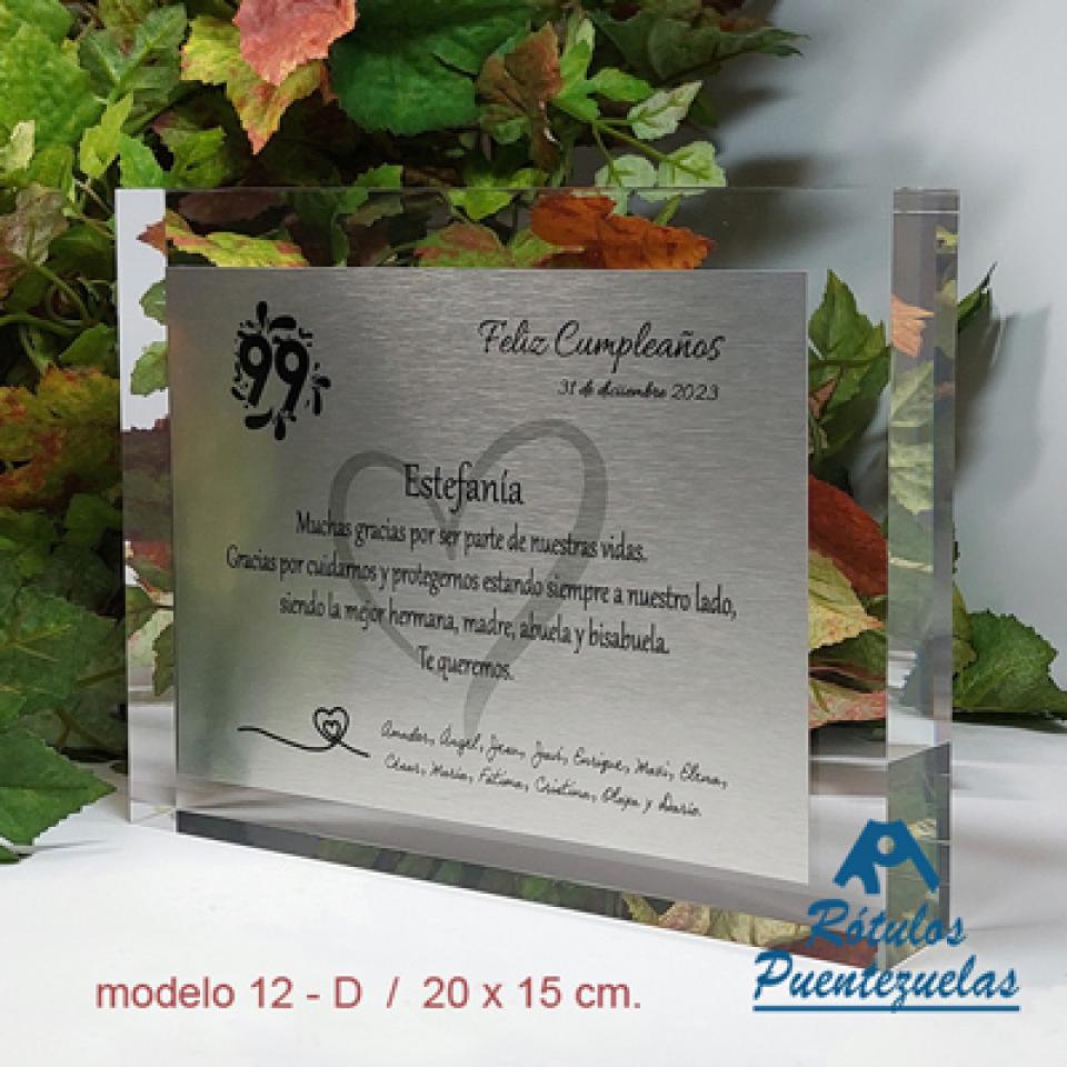 Placa de homenaje de metacrilato impresa conmemorativa, para agradecimiento o recuerdo con estuche de presentación.