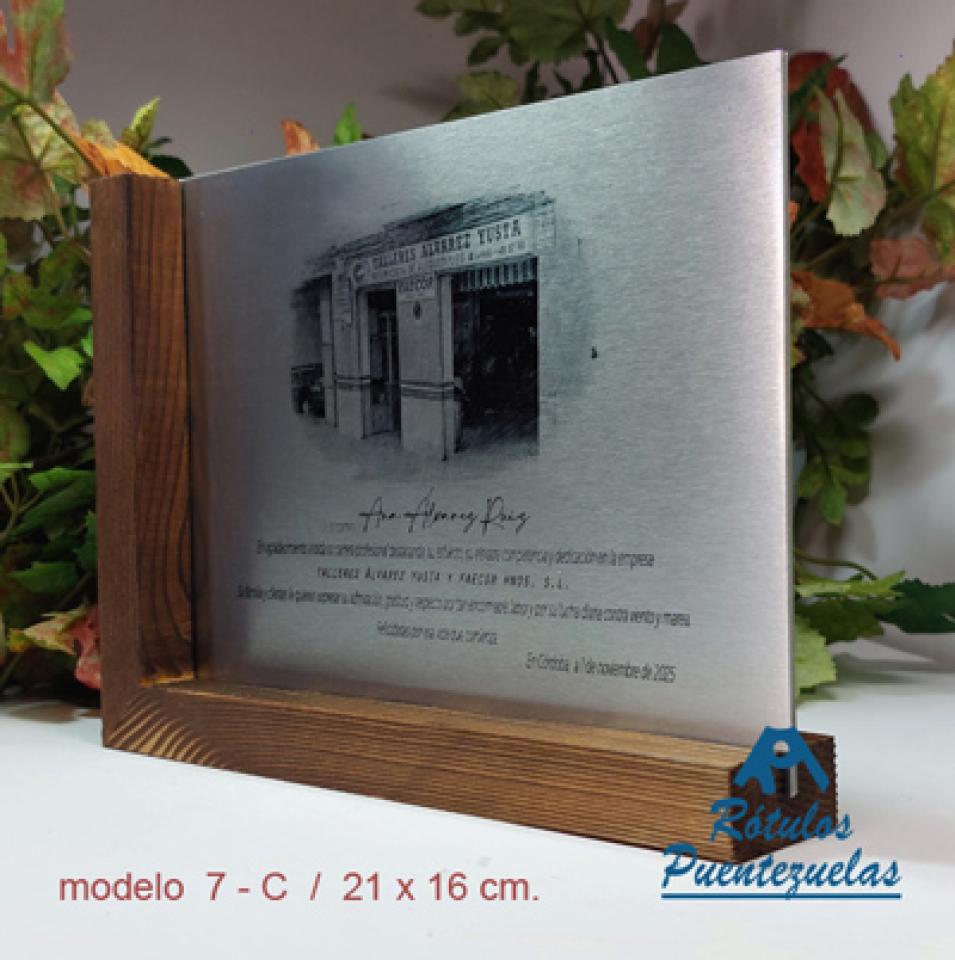 Placa de homenaje de aluminio grabada conmemorativa, para agradecimiento o recuerdo con estuche de presentación.